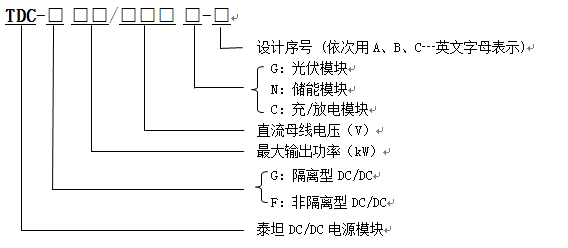 例如:泰坦60KW非隔離型光伏DC/DC模塊,直流母線電壓是750V,它的型號(hào)是:TDC-F60/750G-A。